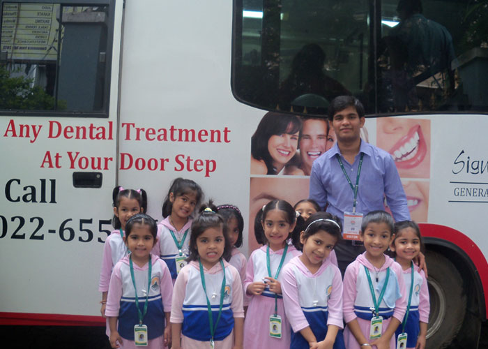 The children were examined in a specially designed mobile van by the dentist and a dental check card was prepared for every child. They were explained the importance of regular brushing of teeth and how to keep their mouth clean. |