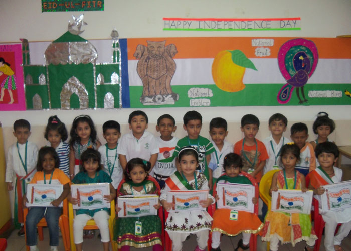 The Preprimary children celebrated Independence Day on Wednesday 14 August. Children came dressed to school in tricolour outfits. The importance of this day was explained to the children, inculcating the spirit of freedom, respect and patriotism towards our Nation. The National Anthem was sung with fervor by all. Followed by an activity in class was a part of the Independence Day celebration.